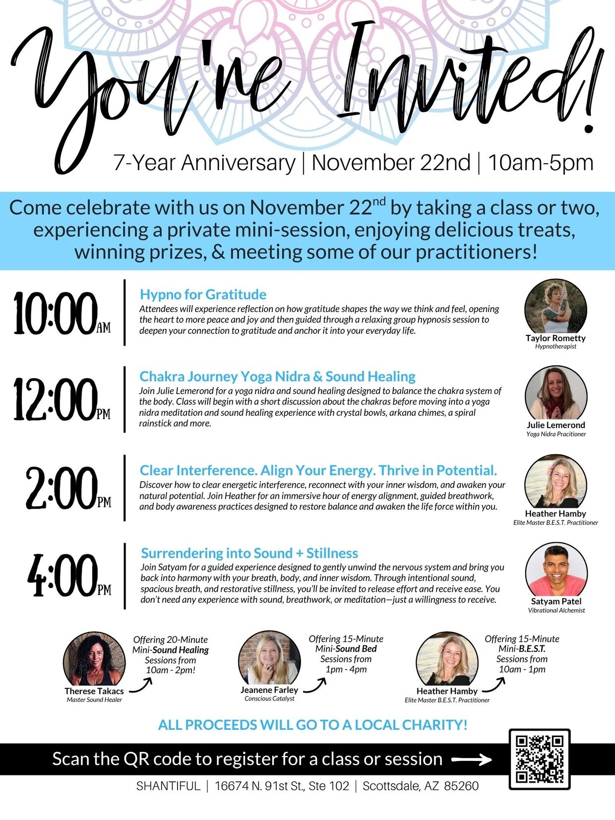 Classes and mini-sessions will be held throughout the day. Join me at Noon for a Chakra Journey Yoga Nidra and Sound Healing, or try a class or session with any of our other amazing practitioners! Click below to register and for more info.